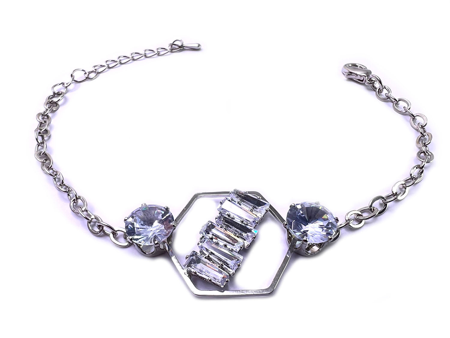 Hexa Geometric Crystal bridge Rhinestone Gold | Rose Gold | Silver Finish (Bracelet)